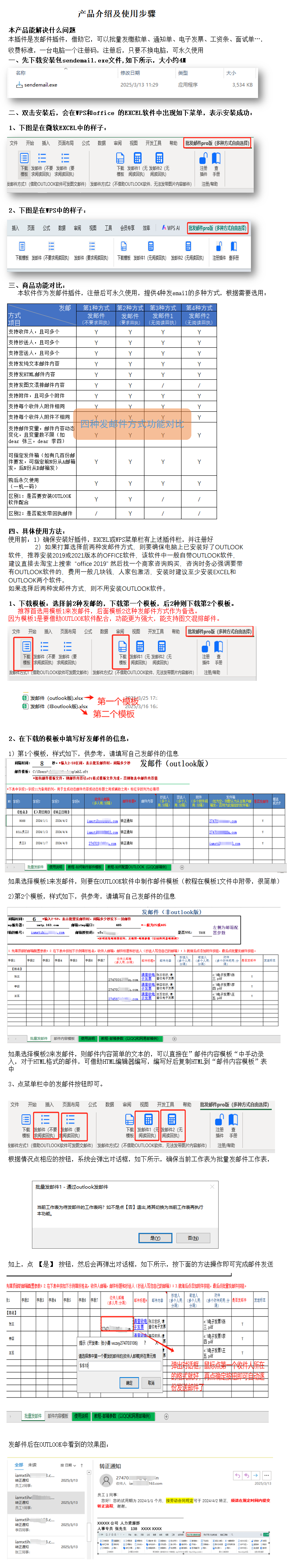 1.2通过OUTLOOK邮箱客户端发邮件(V4.0):即通过OUTLOOK来群发邮件,当本地电脑上有安装OUTLOOK时,可使用此方式,此时不需要绑定邮箱(因为绑定的动作在OUTLOOK邮箱里完成),按照指定的格式填好邮件发送清单,即可批量发送,插件会自动标志成功或失败,见动画教程。